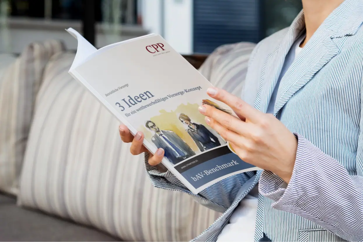 Employer Branding Benefits, die Talente überzeugen Mit CPP wird Vorsorge zum starken Hebel für Employer Branding. Geprüfte Lösungen, klare Kommunikation und digitale Prozesse sorgen dafür, dass Bewerbende schneller Ja sagen und Mitarbeitende länger bleiben. Jetzt beraten lassen Ihr Vorteil im Wettbewerb um Talente Altersvorsorge, Krankenzusatzversicherung und Zeitwertkonten sind für Mitarbeitende existenziell relevant. Standardangebote reichen oft nicht aus. Gefragt sind moderne, verständliche und leicht zugängliche Benefits, die im Recruiting überzeugen und im Alltag spürbar Nutzen stiften. Vorsorge, die Ihr Arbeitgeberversprechen stärkt CPP bietet alle wichtigen Bausteine der finanziellen Vorsorge aus einer Hand und entwickelt gemeinsam mit Ihrer HR ein attraktives, wettbewerbsfähiges Konzept. Einführung, Kommunikation und Administration laufen strukturiert und digital, Mitarbeitende erhalten transparente Informationen und persönliche Beratung. Betriebliche Altersvorsorge (bAV) Geförderte bAV mit Sonderkonditionen, flexible Beiträge, nachhaltige Anlage, Life Time Conditions, verständlich erklärt und einfach abschließbar. Berufsunfähigkeitsabsicherung (BU) Bis zu 50 % günstiger als privat, häufig ohne Gesundheitsfragen, inklusive Expertenservice, im Leistungsfall ein starkes Sicherheits-versprechen im Recruiting. Betriebliches Gesundheitsbudget Schnelle Kostenerstattung per App und Facharztterminservice, sofort erlebbare Vorteile im Alltag. Zeitwertkonten (LAZ/ATZ) Zeit oder Geld flexibel ansparen für Sabbatical, Elternzeit oder einen früheren Ruhestand, gelebte Work Life Balance statt Schlagwort. Best Practices im Einsatz Ein kurzer Case zeigt, wie ein integriertes Vorsorgeangebot im Employer Branding wirkt, von der Botschaft auf der Karrierepage über die interne Kampagne bis zur persönlichen Beratung. Fokus sind klare Kommunikation, reibungslose Prozesse und eine gute Mitarbeitendenerfahrung. Sie sehen gerade einen Platzhalterinhalt für ein Vimeo-Video. Um das Video abzuspielen, klicken Sie auf den Button unten. Bitte beachten Sie, dass dabei Daten an Vimeo (Drittanbieter) übertragen werden. Mehr Informationen Inhalt entsperren Erforderlichen Service akzeptieren und Inhalte entsperren Erfolgreiche Vorsorge: 3 Ansätze zur Inspiration Unser Leitfaden gibt unterschiedliche Anregungen, wie Sie Ihr Vorsorgeangebot strukturiert modernisieren. Lassen Sie uns gemeinsam herausfinden, welches Modell zu Ihrem Unternehmen passt. Jetzt herunterladen Zertifizierter Service – stark für Ihre Teams Wir gehen mit gutem Beispiel voran: Als Great Place to Work® zertifiziert stehen wir für glaubwürdige, faire Führung und die aktive Förderung unserer Mitarbeitenden. Dieses Verständnis prägt auch unsere Arbeit für Kunden. Mit TÜV-qualifiziertem Qualitätsmanagement, praxisnahen Konzepten und gelebter Service-Exzellenz verbinden wir Pflicht und Kür – für verlässliche Vorsorge und begeisternde Beratung Ihrer Teams. Ihre Fragen. Unsere Antworten. Fragen und Antworten zu Benefits und Marke Warum ist betriebliche Vorsorge ein wichtiger Faktor beim Employer Branding? Eine breit angelegte StepStone Job-Studie aus dem Jahr 2020 unterstreicht die enorme Bedeutung der betrieblichen Altersvorsorge (bAV) für die Mitarbeiterbindung und -gewinnung: Sie wurde in allen Altersgruppen als der wichtigste Benefit bei der Jobwahl genannt, noch wichtiger als Image oder andere Zusatzleistungen, wobei Arbeitnehmer auch bereit waren, für eine gute bAV auf Gehalt zu verzichten. Was macht ein attraktives Vorsorgeprogramm aus? Betriebliche Vorsorge ist dann besonders attraktiv, wenn sie Mitarbeitenden Angebote bietet, die sie sich ohne Arbeitgeber nur schwer leisten können. Dazu zählen besonders die existenziellen Themen Alters- und Krankenvorsorge, bei denen Mitarbeitende dank fairer Arbeitgeber-Zuschüsse und staatlicher Förderung Beitragsvorteile von bis zu 50% erzielen können. Darüber hinaus gibt es über den Arbeitgeber oft Zusatzleistungen, die Privatkunden gar nicht angeboten werden. Was ist der Schlüssel zu einem erfolgreichen Employer Branding? Streng nach dem Motto „Tue gutes und rede darüber!“ sollten Firmen sicherstellen, dass Mitarbeitende ihr Angebot kennen, verstehen und die finanziellen Vorteile wertschätzen. Deshalb unterstützt CPP bei der Mitarbeiter-Kommunikation mit Microsites, Webinaren sowie mit persönlichen Mitarbeiter-Beratungen und individuellen Berechnungen. Am besten ist es, die Vorsorge-Beratung direkt als festen Baustein ins Onboarding neuer Kolleginnen und Kollegen einzubinden. Ihr Partner für starke Arbeitgebermarken Haben wir Sie überzeugt? Melanie Topp Senior Manager Sales Support 040 69 63 510-45 melanie.topp@cppartner.de Termin vereinbaren Vorsorge strukturiert. Ihr Weg zur Lösung. CPP ist Ihr kompetenter Komplett-Dienstleister für die betriebliche Vorsorge im Mittelstand. Wir verbinden tiefgreifende Fachkompetenz mit persönlicher Nähe und effizienten, digitalen Prozessen. Finden Sie die passenden Inhalte über Ihre Branche, Ihre Aufgabe oder Ihr Thema. Ihre Branche Wählen Sie eine Branche aus, die zu Ihrem Unternehmen passt. Agenturbranche Bau & Handwerk Firmengruppen & Filialisten Finanzunternehmen IT & Engineering Industrie Ihre Aufgabe Wählen Sie eine Aufgabe aus, die zu Ihrem Unternehmen passt. Geschäftsführung Lohnbuchhaltung Mitarbeitende Finanzen & Controlling HR Compliance Ihr Thema Wählen Sie ein Thema aus, das zu Ihrem Unternehmen passt. Digitalisierung Haftung Vereinheitlichung Erfahrung & Wissen Employer Branding Unabhängigkeit Arbeitsrecht Vorsorge strukturiert. Ihr Weg zur Lösung. CPP ist Ihr kompetenter Komplett-Dienstleister für die betriebliche Vorsorge im Mittelstand. Wir verbinden tiefgreifende Fachkompetenz mit persönlicher Nähe und effizienten, digitalen Prozessen. Finden Sie die passenden Inhalte über Ihre Branche, Ihre Aufgabe oder Ihr Thema. Ihre Branche Wählen Sie eine Branche aus, die zu Ihrem 